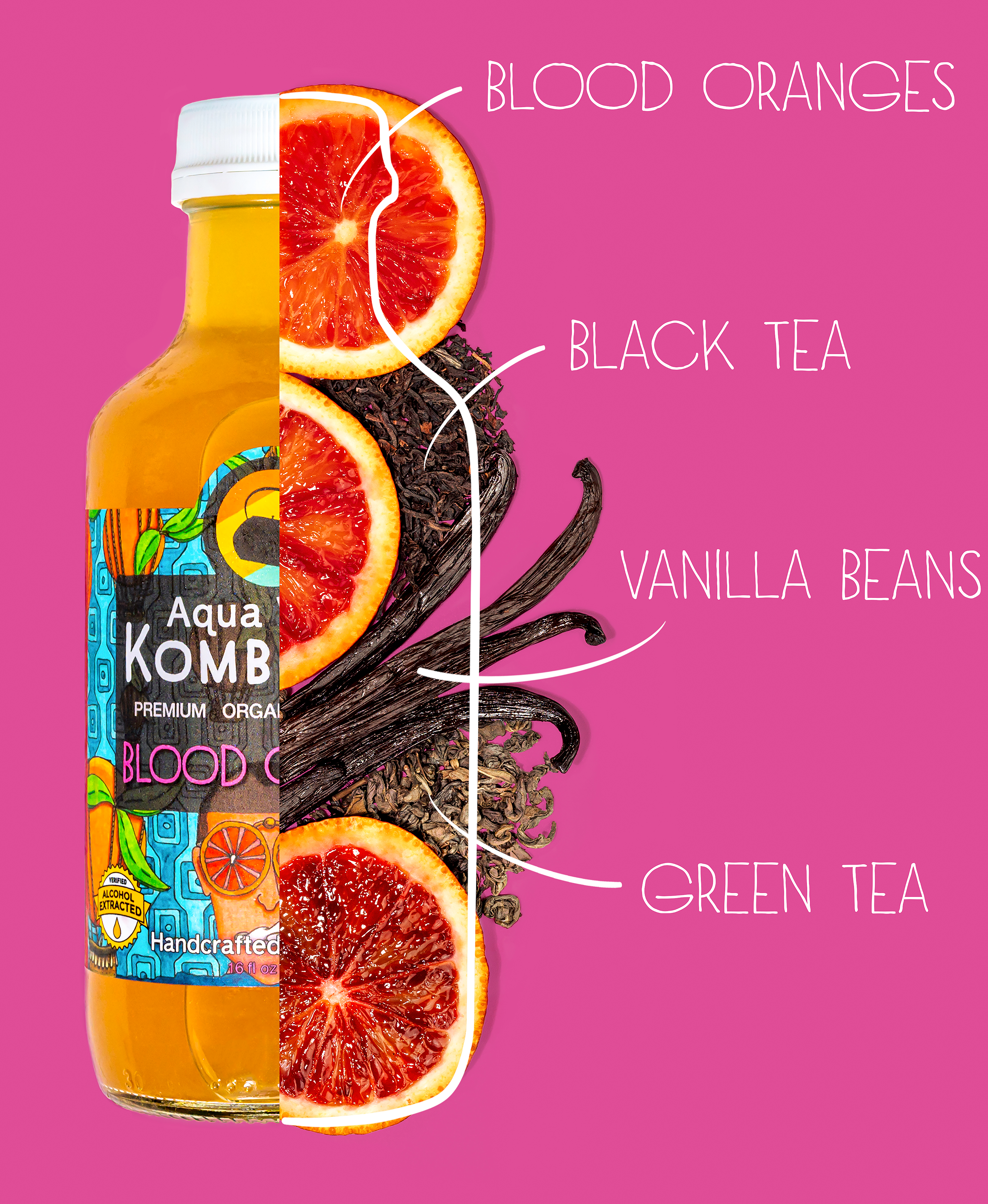 Kombucha* (Filtered Water, Kombucha Culture, Black Tea, Green Tea, Cane Sugar), Blood Orange Juice from Concentrate*, Blood Orange Flavor*, Vanilla Flavor*